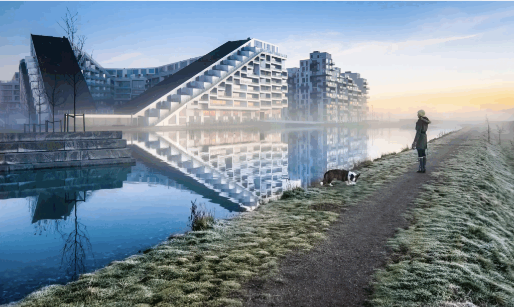 El 8 House es un complejo con forma de número 8 que mezcla casas, oficinas y tiendas en un solo lugar. Su diseño busca promover la convivencia entre las personas, usando rampas para caminar y áreas verdes que conectan todos los pisos. Es un claro ejemplo de cómo se puede crear un espacio urbano sostenible que también sea accesible y amigable para la comunidad.