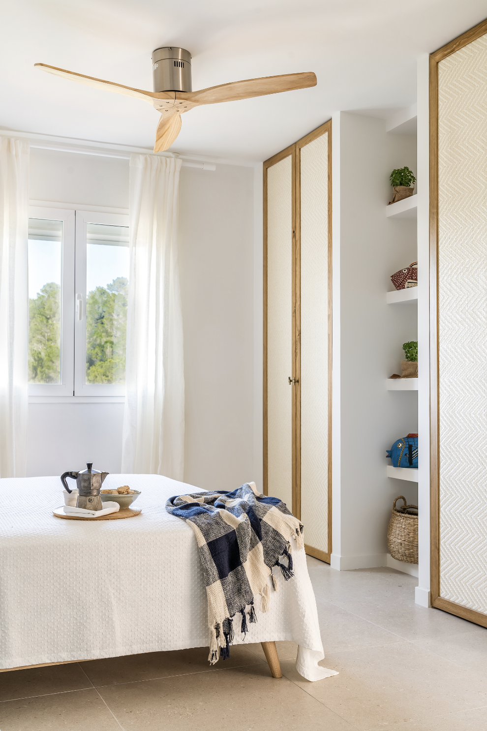 Los dormitorios son amplios y aireados con una vista espectacular hacía una montaña con bosque, una de las muchas zonas protegidas de la isla. El hecho que la vivienda esté rodeada de una vista preciosa también desde la parte trasera de la finca fue unos de los aspectos que motivó a la propietaria a la compra del apartamento.
